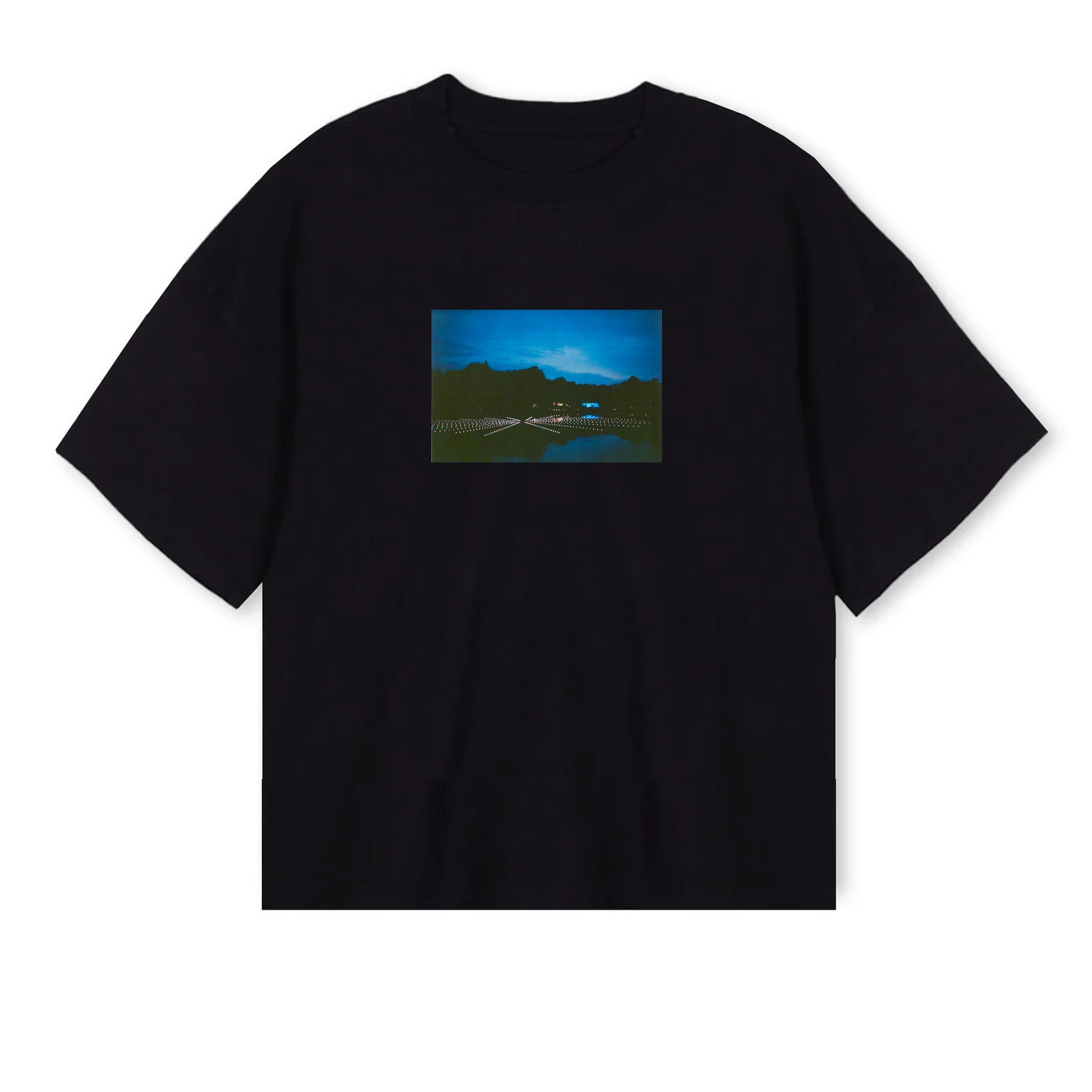 This oversized, boxy fit t-shirt features a light show 35mm photograph from Houghton 2019.